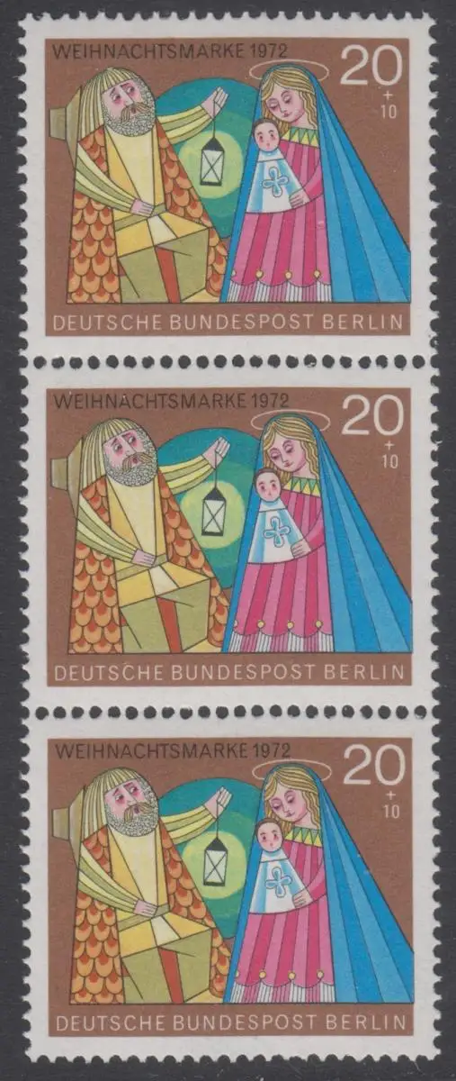 BERLIN 1972 Michel-Nummer 441 postfrisch vert.STRIP(3) - Weihnachten