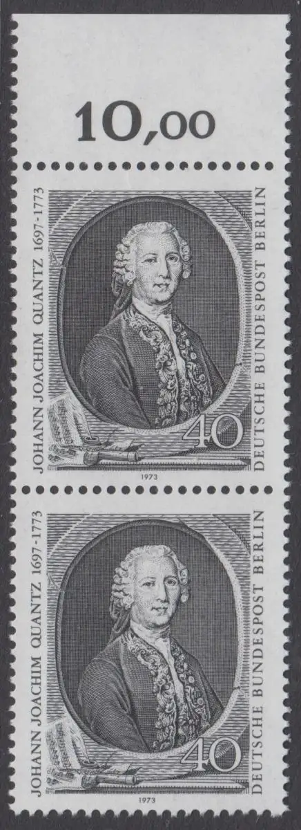 BERLIN 1973 Michel-Nummer 454 postfrisch vert.PAAR RAND oben (d) - Johann Joachim Quantz, Flötist und Komponist