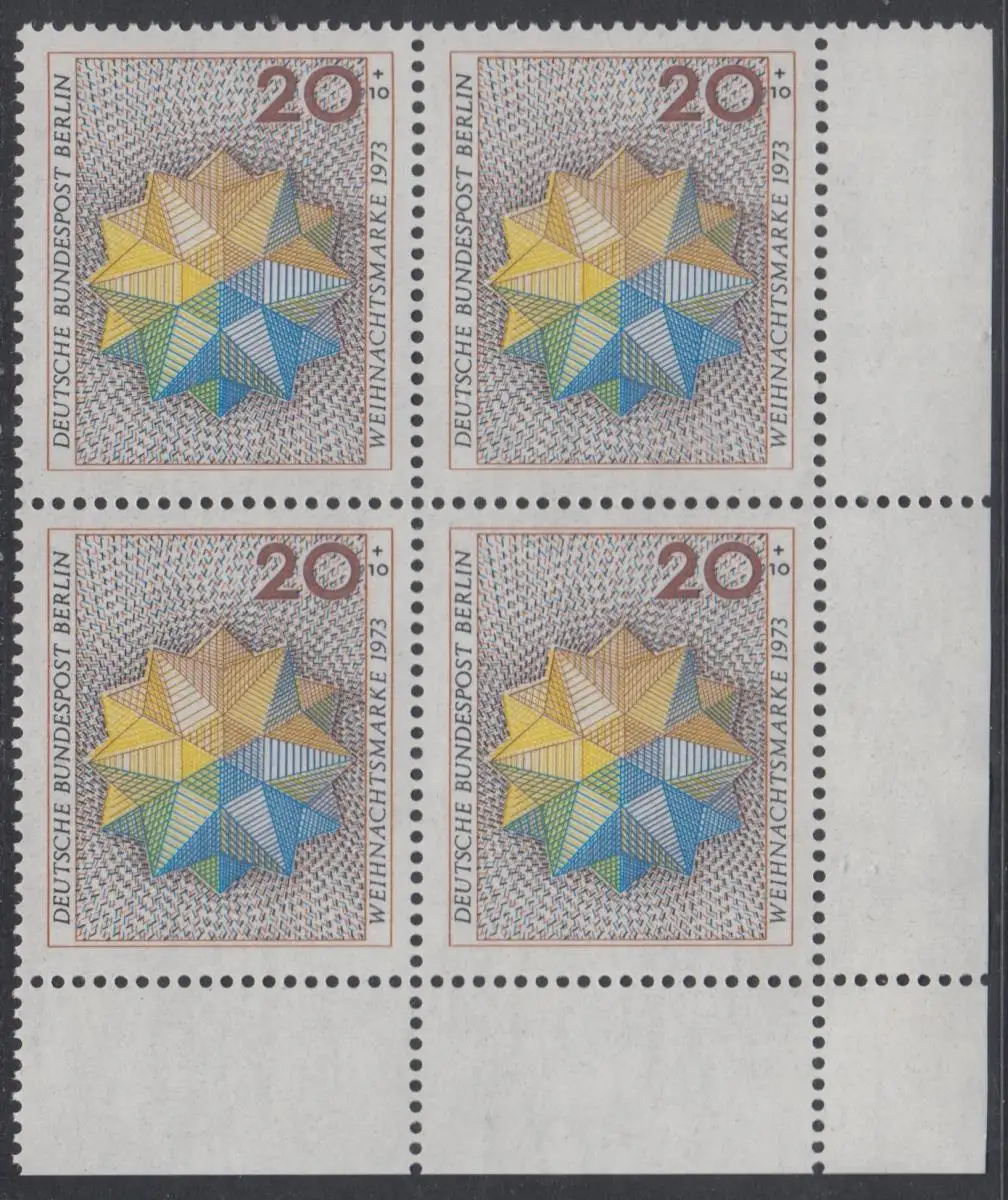 BERLIN 1973 Michel-Nummer 463 postfrisch BLOCK ECKRAND unten rechts - Weihnachten