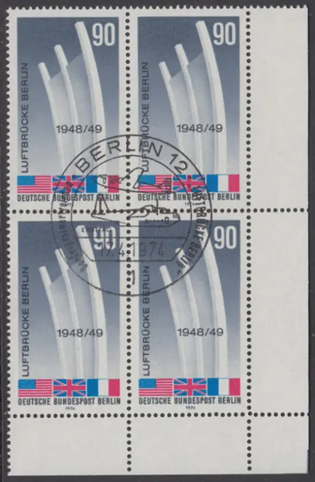 BERLIN 1974 Michel-Nummer 466 gestempelt BLOCK ECKRAND unten rechts