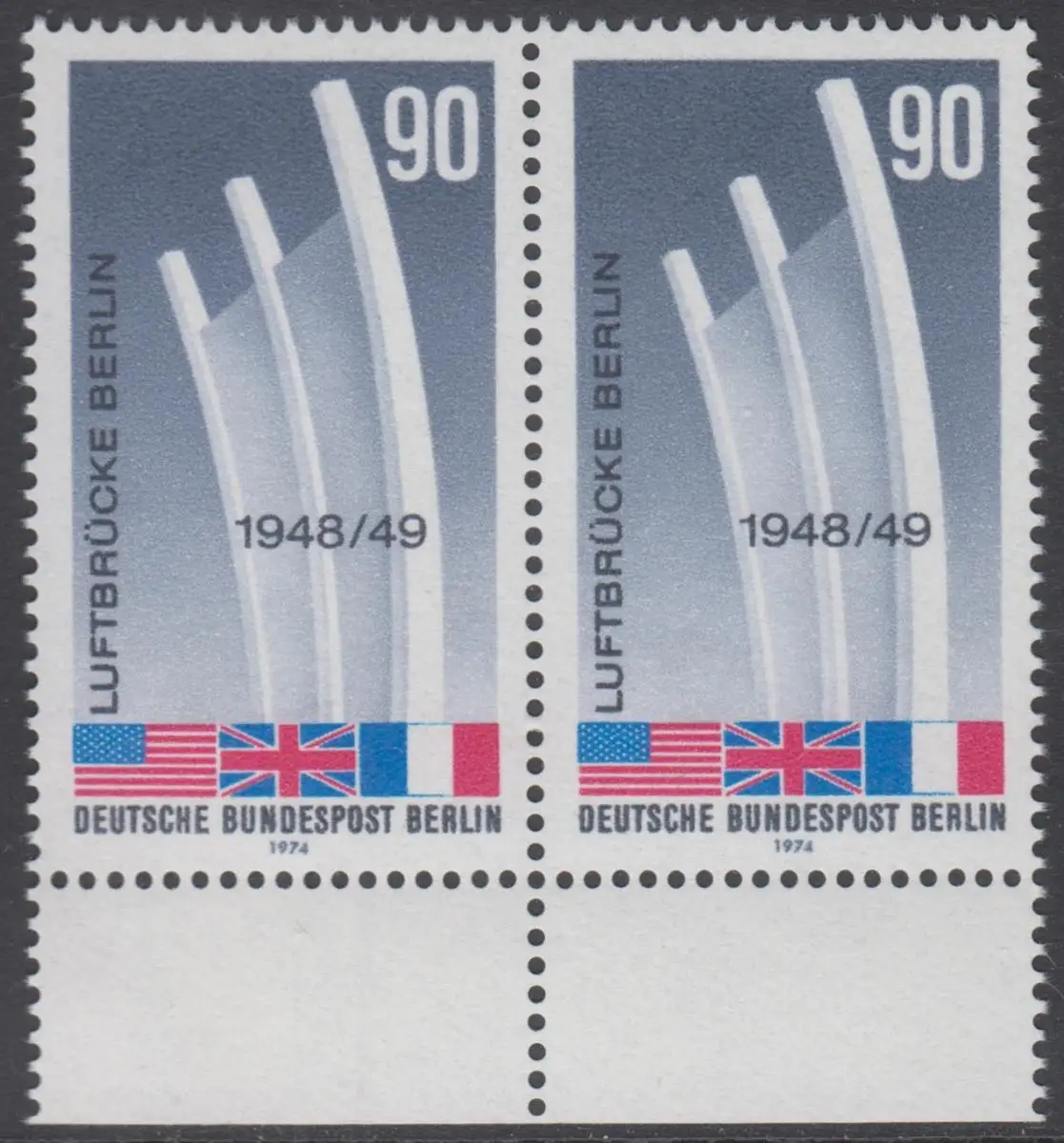 BERLIN 1974 Michel-Nummer 466 postfrisch horiz.PAAR RÄNDER unten - Beendigung der Blockade Berlins; Berliner Luftbrücke