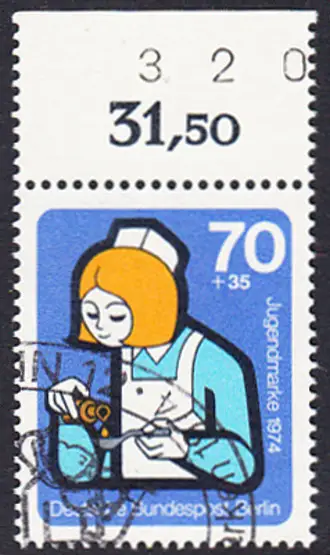 BERLIN 1974 Michel-Nummer 471 gestempelt EINZELMARKE RAND oben (a)