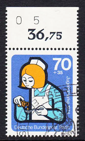 BERLIN 1974 Michel-Nummer 471 gestempelt EINZELMARKE RAND oben (b)