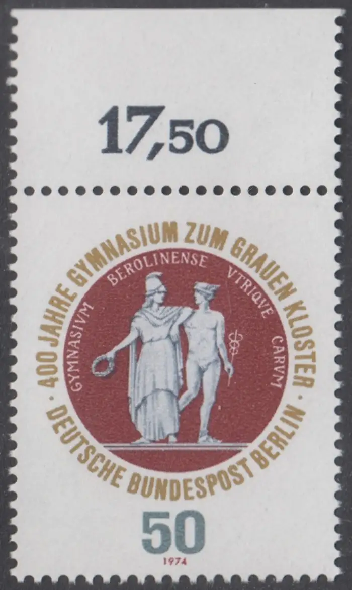 BERLIN 1974 Michel-Nummer 472 postfrisch EINZELMARKE RAND oben (f) - Gymnasium zum Grauen Kloster, Berlin