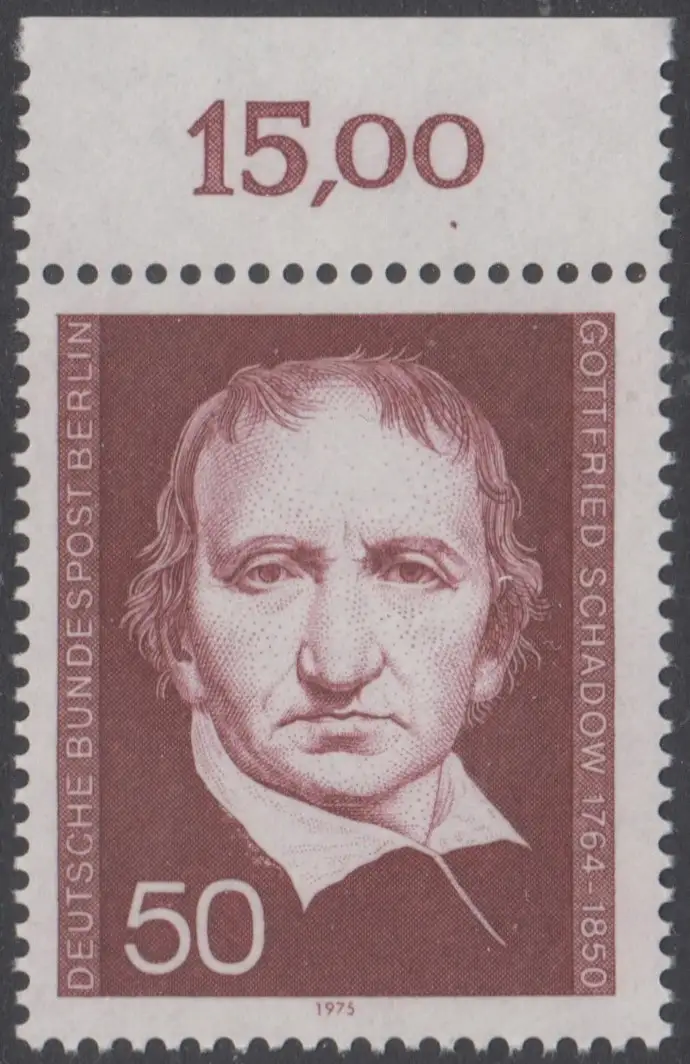 BERLIN 1975 Michel-Nummer 482 postfrisch EINZELMARKE RAND oben (e) - Gottfried Schadow, Bildhauer und Grafiker