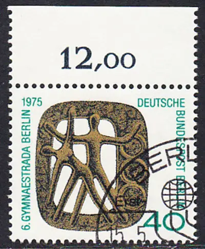 BERLIN 1975 Michel-Nummer 493 gestempelt EINZELMARKE RAND oben (c)