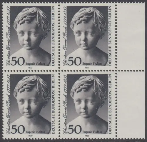 BERLIN 1977 Michel-Nummer 541 postfrisch BLOCK RÄNDER rechts - Christian Daniel Rauch, Bildhauer