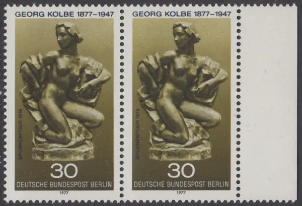 BERLIN 1977 Michel-Nummer 543 postfrisch horiz.PAAR RAND rechts - Georg Kolbe, Maler und Bildhauer