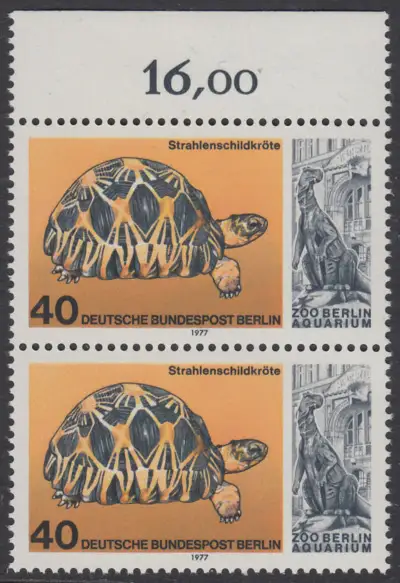 BERLIN 1977 Michel-Nummer 554 postfrisch vert.PAAR RAND oben - Wiedereröffnung des Aquariums im Berliner Zoo: Strahlenschildkröte