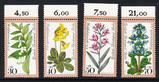 BERLIN 1978 Michel-Nummer 573-576 postfrisch SATZ(4) EINZELMARKEN RÄNDER oben (a) - Waldblumen