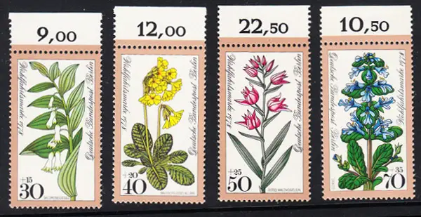 BERLIN 1978 Michel-Nummer 573-576 postfrisch SATZ(4) EINZELMARKEN RÄNDER oben (b) - Waldblumen