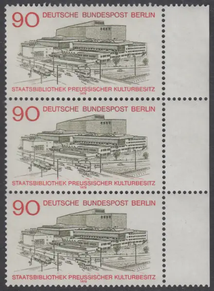 BERLIN 1978 Michel-Nummer 577 postfrisch vert.STRIP(3) RAND rechts - Staatsbibliothek Preußischer Kulturbesitz