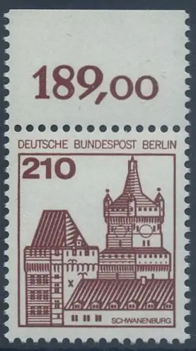 BERLIN 1978 Michel-Nummer 589 postfrisch EINZELMARKE RAND oben (e) - Burgen & Schlösser: Schwanenburg, Kleve