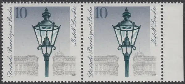 BERLIN 1979 Michel-Nummer 603 postfrisch horiz.PAAR RAND rechts - Historische Straßenlaternen: Gasbetriebene Modell-Leuchte