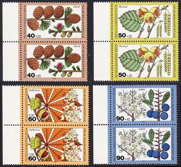 BERLIN 1979 Michel-Nummer 607-610 postfrisch SATZ(4) vert.PAARE RÄNDER links - Blätter, Blüten und Früchte des Waldes