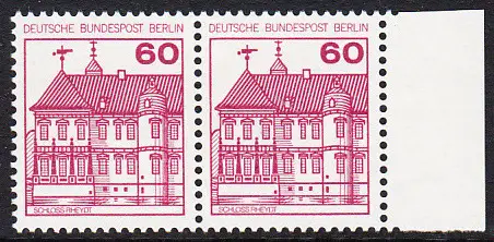 BERLIN 1979 Michel-Nummer 611 postfrisch horiz.PAAR RAND rechts - Burgen & Schlösser: Schloss Rheydt