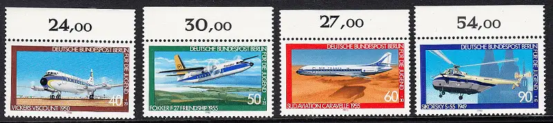 BERLIN 1980 Michel-Nummer 617-620 postfrisch SATZ(4) EINZELMARKEN RÄNDER oben (b) - Luftfahrt