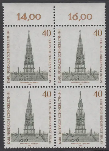 BERLIN 1981 Michel-Nummer 640 postfrisch BLOCK RÄNDER oben (b) - Karl Friedrich Schinkel, Baumeister und Maler