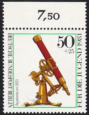 BERLIN 1981 Michel-Nummer 642 postfrisch EINZELMARKE RAND oben - Optische Instrumente: Äquatoreal