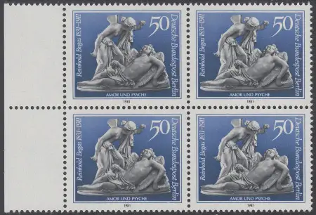 BERLIN 1981 Michel-Nummer 647 postfrisch BLOCK RÄNDER links (a) - Reinhold Begas, Bildhauer