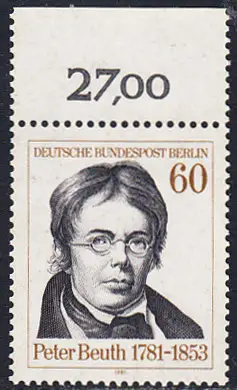 BERLIN 1981 Michel-Nummer 654 postfrisch EINZELMARKE RAND oben (b) - Peter Christian Wilhelm Beuth, Verwaltungsfachmann