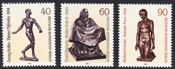 BERLIN 1981 Michel-Nummer 655-657 postfrisch SATZ(3) EINZELMARKEN - Skulpturen des 20. Jahrhunderts