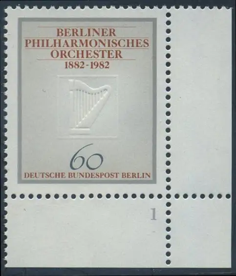 BERLIN 1982 Michel-Nummer 666 postfrisch EINZELMARKE ECKRAND unten rechts (FN) - Berliner Philharmonisches Orchester
