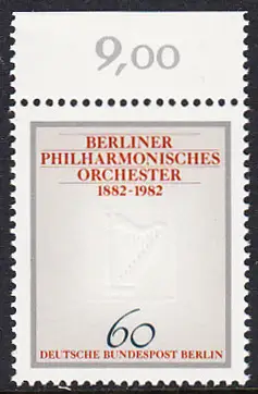 BERLIN 1982 Michel-Nummer 666 postfrisch EINZELMARKE RAND oben (a) - Berliner Philharmonisches Orchester