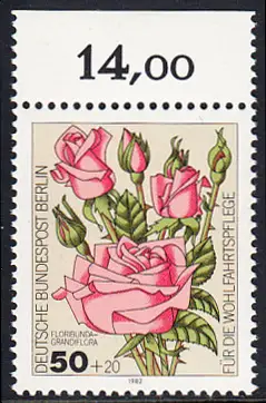 BERLIN 1982 Michel-Nummer 680 postfrisch EINZELMARKE RAND oben - Gartenrosen: Floribunda-Grandiflora