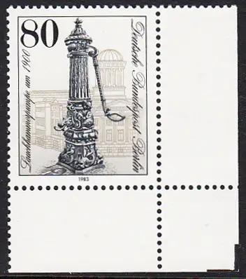 BERLIN 1983 Michel-Nummer 691 postfrisch EINZELMARKE ECKRAND unten rechts - Historische Straßenpumpen in Berlin: Lauchhammerpumpe, Schlossstraße