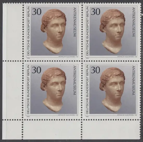 BERLIN 1984 Michel-Nummer 708 postfrisch BLOCK ECKRAND unten links - Kunstschätze in Berliner Museen: Königin Kleopatra VII. (Antikenmuseum)