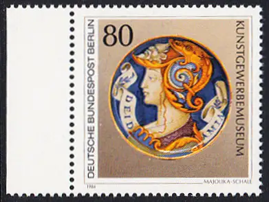 BERLIN 1984 Michel-Nummer 711 postfrisch EINZELMARKE RAND links - Kunstschätze in Berliner Museen: Majolika-Schale (Kunstgewerbemuseum)