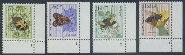 BERLIN 1984 Michel-Nummer 712-715 postfrisch SATZ(4) EINZELMARKEN ECKRÄNDER unten rechts (FN) - Bestäuberinsekten
