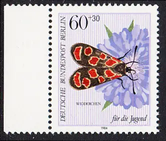 BERLIN 1984 Michel-Nummer 713 postfrisch EINZELMARKE RAND links - Bestäuberinsekten: Esparsetten-Widderchen
