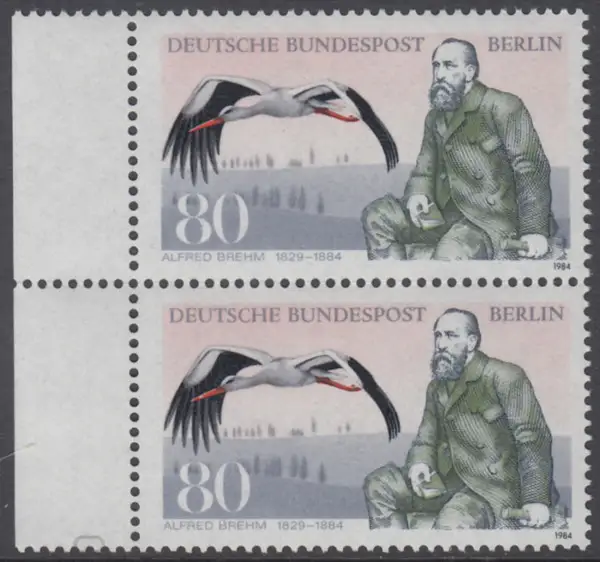 BERLIN 1984 Michel-Nummer 722 postfrisch vert.PAAR RAND links - Alfred Edmund Brehm, Zoologe