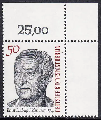 BERLIN 1984 Michel-Nummer 723 postfrisch EINZELMARKE ECKRAND oben rechts - Dr. Ernst Ludwig Heim, Arzt