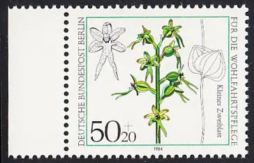 BERLIN 1984 Michel-Nummer 724 postfrisch EINZELMARKE RAND links - Orchideen: Kleines Zweiblatt