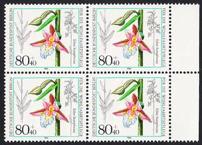 BERLIN 1984 Michel-Nummer 726 postfrisch BLOCK RÄNDER rechts - Orchideen: Echte Sumpfwurz