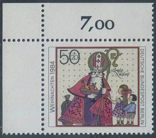 BERLIN 1984 Michel-Nummer 729 postfrisch EINZELMARKE ECKRAND oben links - Weihnachten