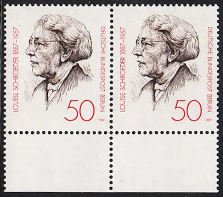 BERLIN 1987 Michel-Nummer 779 postfrisch horiz.PAAR RAND unten - Louise Schroeder, Politikerin, Oberbürgermeisterin von Berlin