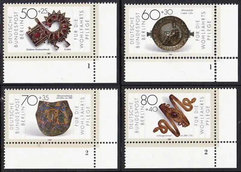 BERLIN 1987 Michel-Nummer 789-792 postfrisch SATZ(4) EINZELMARKEN ECKRÄNDER unten rechts (FN) - Gold- und Silberschmiedekunst