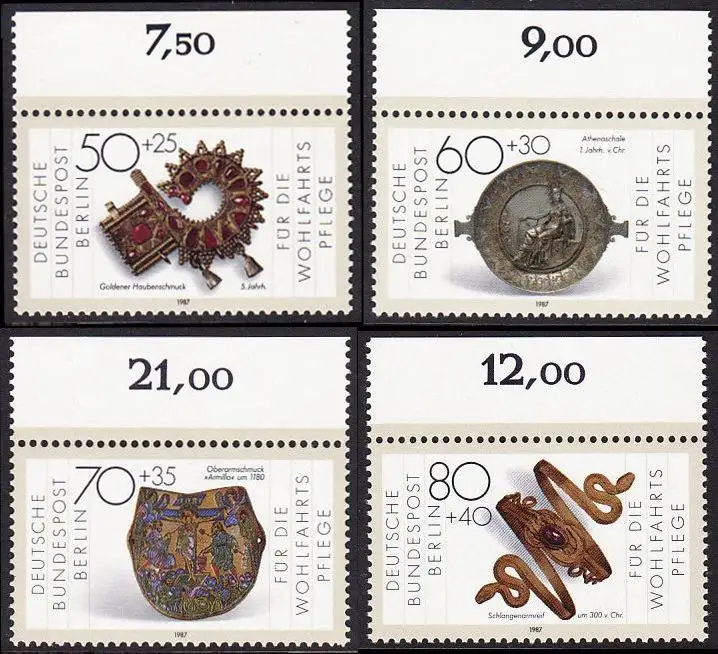 BERLIN 1987 Michel-Nummer 789-792 postfrisch SATZ(4) EINZELMARKEN RÄNDER oben - Gold- und Silberschmiedekunst