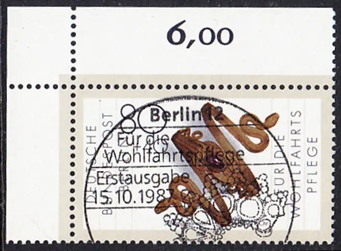 BERLIN 1987 Michel-Nummer 792 gestempelt EINZELMARKE ECKRAND oben links