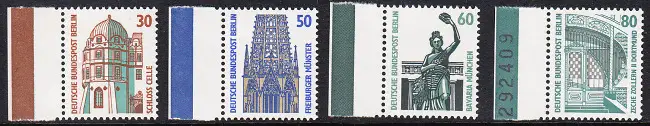 BERLIN 1987 Michel-Nummer 793-796 postfrisch SATZ(4) EINZELMARKEN RÄNDER links (a) - Sehenswürdigkeiten