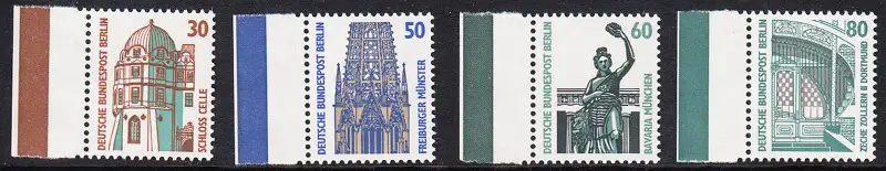 BERLIN 1987 Michel-Nummer 793-796 postfrisch SATZ(4) EINZELMARKEN RÄNDER links (c) - Sehenswürdigkeiten