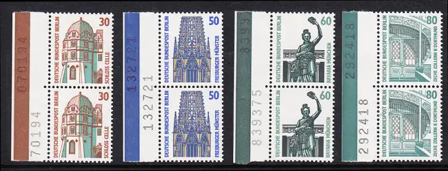 BERLIN 1987 Michel-Nummer 793-796 postfrisch SATZ(4) vert.PAARE RÄNDER links - Sehenswürdigkeiten