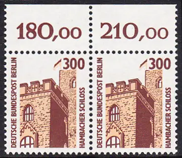 BERLIN 1988 Michel-Nummer 799 postfrisch horiz.PAAR RAND oben - Sehenswürdigkeiten: Hambacher Schloss