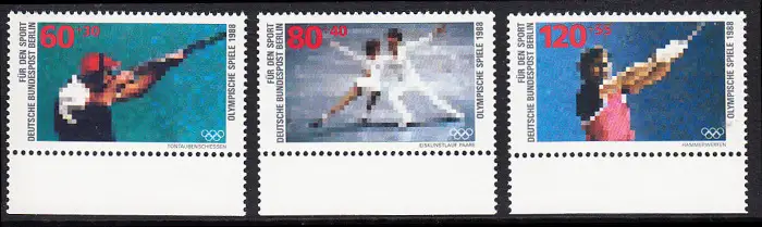 BERLIN 1988 Michel-Nummer 801-803 postfrisch SATZ(3) EINZELMARKEN RÄNDER unten - Sporthilfe: Olympische Winterspiele, Calgary / Olympische Sommerspiele, Seoul