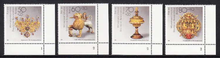 BERLIN 1988 Michel-Nummer 818-821 postfrisch SATZ(4) EINZELMARKEN ECKRÄNDER unten rechts (FN) - Gold- und Silberschmiedekunst