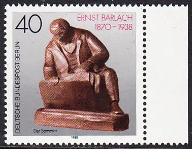 BERLIN 1988 Michel-Nummer 823 postfrisch EINZELMARKE RAND rechts - Ernst Barlach, Bildhauer, Grafiker und Dichter